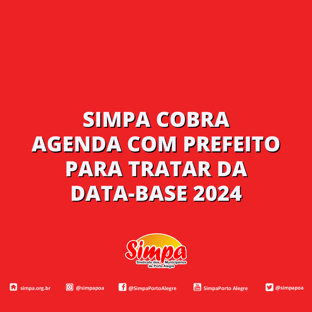 A primeira reunião para tratar da pauta de reivindicações da Data-Base 2024 entre o Sindicato dos Municipários de Porto Alegre (Simpa) e o Governo Melo será às 14h30min desta quinta-feira (18/1), na Secretaria Municipal de Administração e Patrimônio (SMAP), na Rua Siqueira Campos, nº 1.300, no Centro Histórico (atrás do Paço Municipal). A pauta de […]