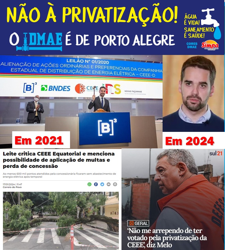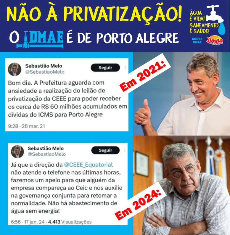 Enquanto o prefeito Melo coloca a culpa da crise no abastecimento de água na EQUATORIAL, o SIMPA e CORES DMAE jogam luz neste tema e cobram as falhas da sua gestão! Em resposta a matéria veiculada em 29/12/2023 em GZH com o título “Falta de água: a realidade enfrentada por moradores e o que diz […]