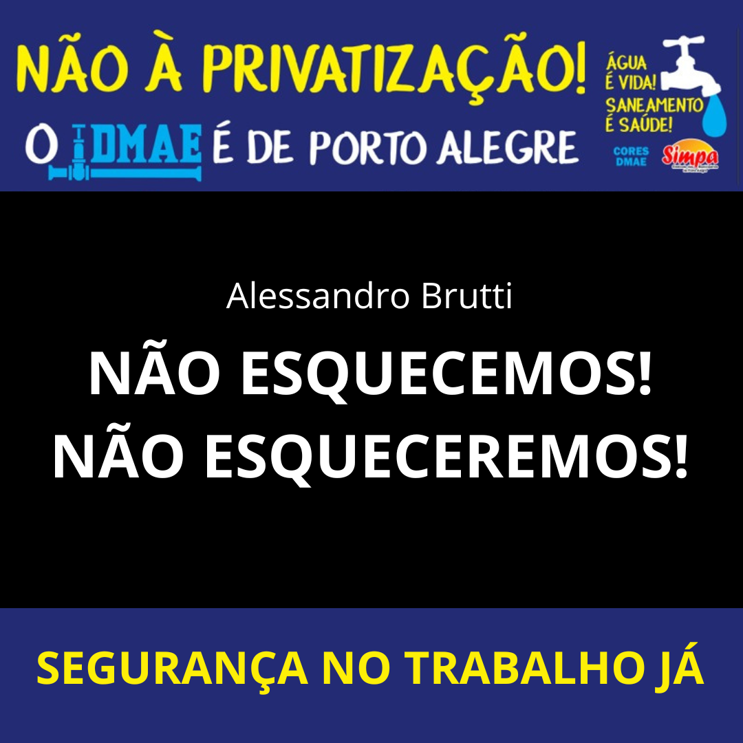 “Venho manifestar aqui meus profundos sentimentos à família destroçada pelo acidente que, no dia 29 de setembro deste ano, vitimou nosso colega, líder da Estação de Tratamento de Esgotos Navegantes do DMAE, Alessandro Brutti. Não o conheci pessoalmente, mas todos os relatos que me chegaram sobre ele, que vieram quando ainda vivo, foram positivos e […]