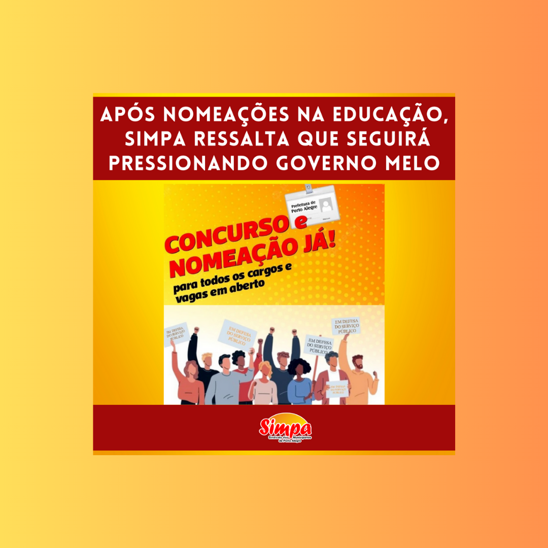 A pressão que o Sindicato dos Municipários de Porto Alegre (Simpa) realiza para que o governo do prefeito Sebastião Melo atenda às reivindicações da categoria municipária vem gerando avanços e conquistas para servidoras/es públicos e, em consequência, para a cidade como um todo. As nomeações dos mais de 370 professores e dos mais de 35 […]