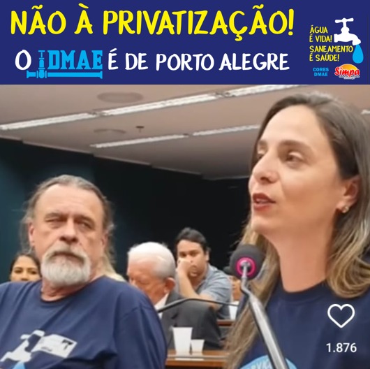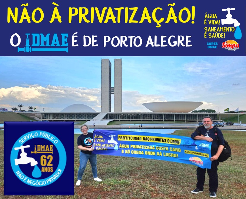 A nova camiseta contra privatização do DMAE foi lançada em Brasília e antecipa a comemoração dos 62 anos de aniversário do Departamento e do dia do Servidor Público! Com a frase “Serviço Público não é Negócio Privado” o SIMPA e o CORES DMAE ressaltam a importância dos servidores na luta contra o desmonte que […]
