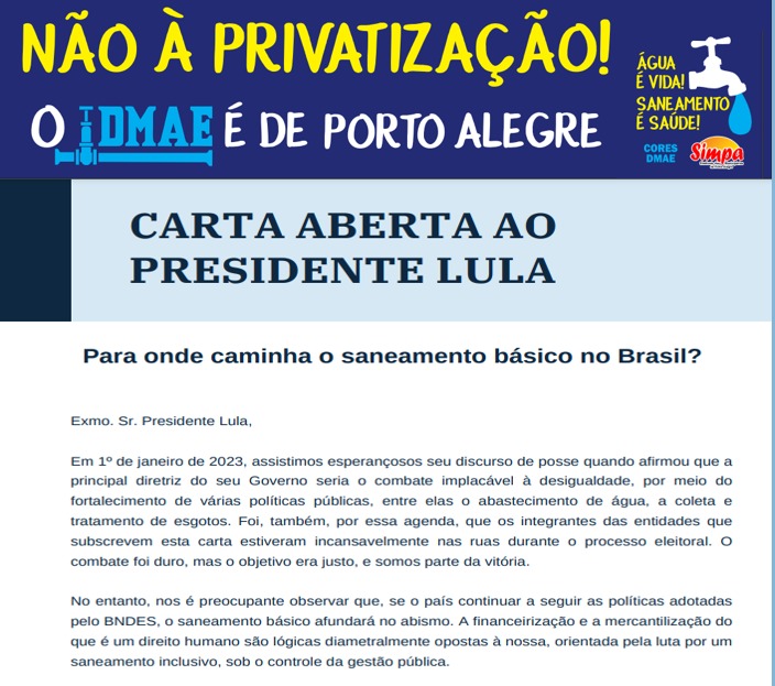 Diversas entidades do setor de saneamento nacional estão preocupadas com as consequências negativas das formas de financiamento do setor de saneamento no Brasil e notadamente as atuações do BNDES, CEF e Conselho Monetário Nacional (CMN). Por isso, publicaram a “Carta Aberta ao Presidente Lula”, na qual são formuladas propostas que visam fortalecer o papel do […]