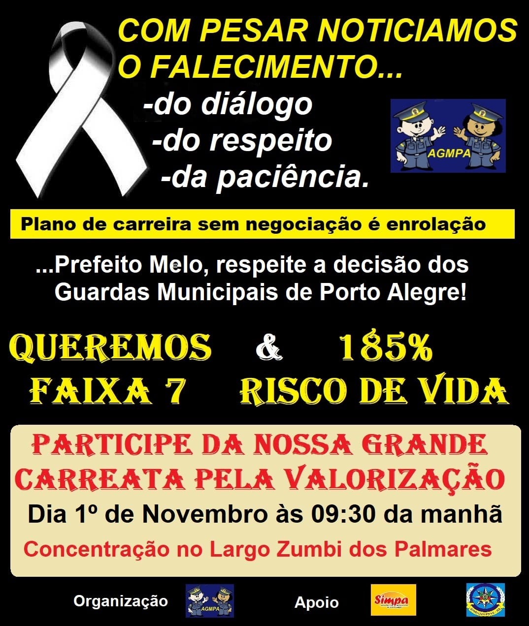 O SIMPA CORES-DMAE, parabeniza e saúda aos servidores públicos neste 28/10, em especial aos colegas municipários de Porto Alegre que são verdadeiros heróis da resistência. Queremos lembrar ao Prefeito Melo que serviço público não é negócio privado! Lutamos por mais gestão e menos precarização, terceirização, privatização e parceirização. Queremos valorização funcional! A DECISÃO […]
