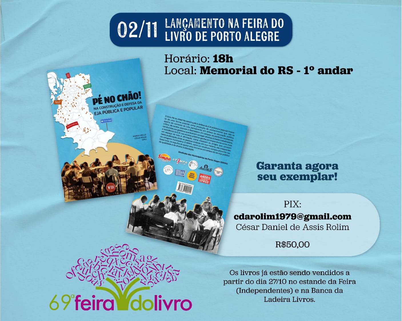 Nesta quinta feira, dia 2, às 18h, no Memorial do RS, durante a 69a. Feira do Livro de Porto Alegre, ocorrerá a sessão coletiva de autógrafos de autoras(es) do livro “Pé no chão! Na defesa e construção da EJA pública e popular”. São 18 artigos de mais de quarenta autoras(es) municipárias(os), em sua expressiva maioria, […]