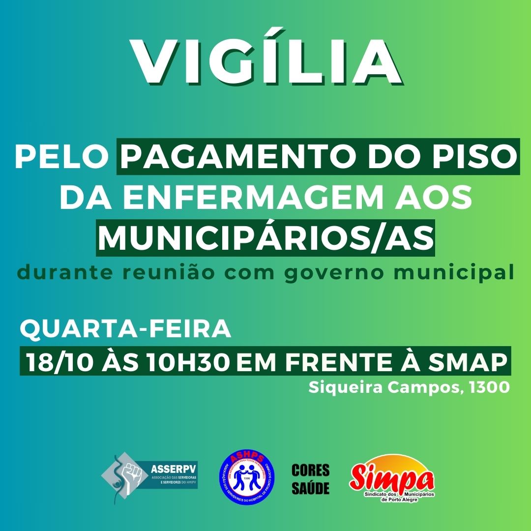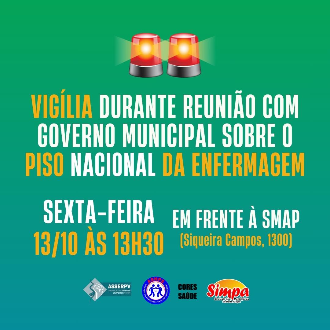 ⚠️ Vigília – quarta-feira (18/10), às 10h30min na SMAP (Siqueira Campos, 1300) ❗ Simpa, Cores Saúde, ASHPS e ASSERPV realizaram reunião com vereadores e governo municipal nesta sexta-feira (18/10) na sede da Secretaria de Administração e Patrimônio (SMAP) sobre o pagamento do Piso da Enfermagem aos municipários e municipárias da capital. Os jurídicos das entidades também estiveram presentes. Todos […]