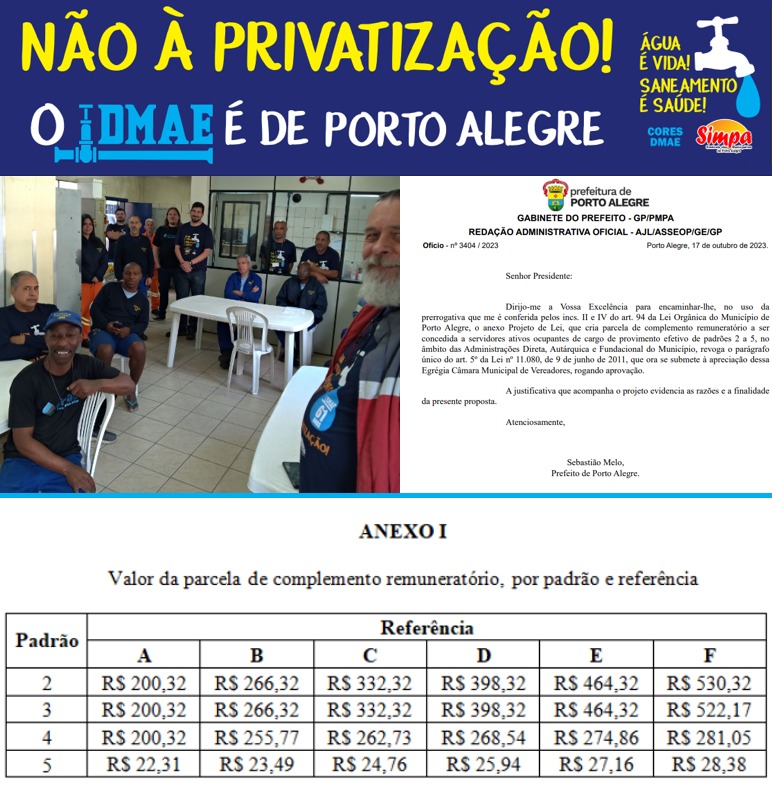 Após pressão do Sindicato dos Municipários de Porto Alegre (Simpa), o prefeito Sebastião Melo enviou à Câmara de Vereadores o Projeto de Lei 036/2023, que cria parcela de complemento remuneratório a ser concedida aos padrões 2 a 5, no âmbito das Administrações Direta, Autárquica e Fundacional do Município. A iniciativa, que revoga o parágrafo único […]