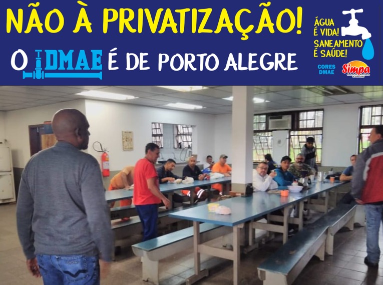 Dando continuidade às reuniões nas unidades do DMAE, o SIMPA CORES-DMAE conversou com os colegas da GDSU na sexta-feira, dia 29/09, e hoje, segunda-feira 02/10, na GCON falando sobre o processo de privatização e atualizando todas as medidas e encaminhamentos tomados para a resistência há 6 anos! Foi reiterada a necessidade de se continuar na […]