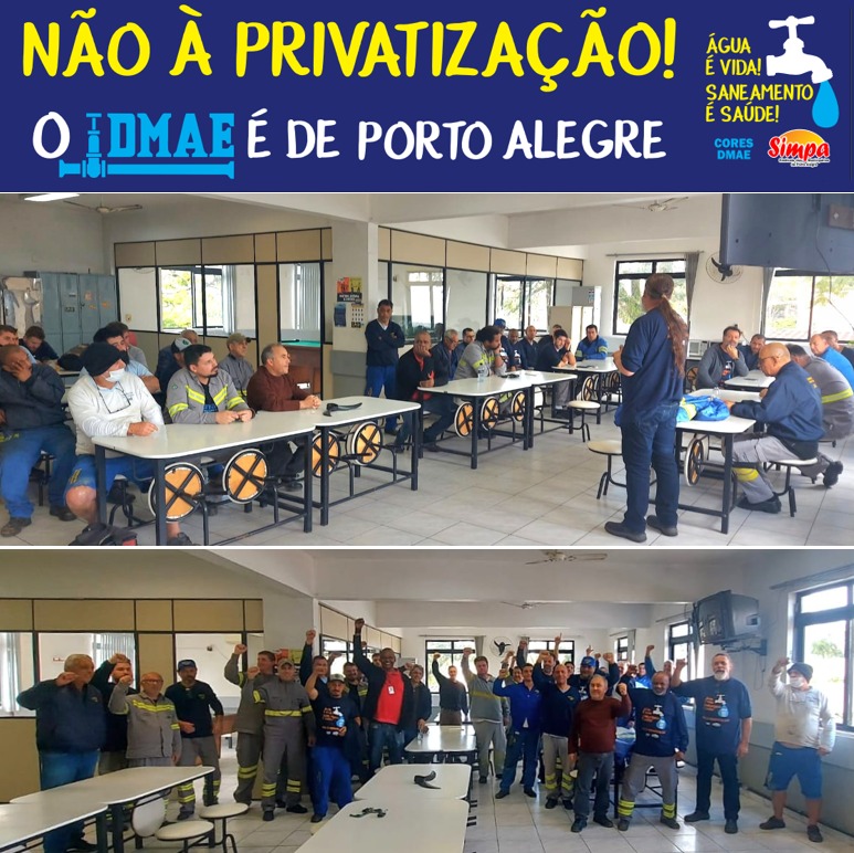 Dando continuidade às reuniões por local de trabalho, hoje a reunião foi com os colegas da GDLE/DMAE, conversando sobre a luta de 6 anos de resistência ao processo de privatização, atualizando todas as medidas e encaminhamentos tomados e reiterando a necessidade de continuar a resistir a tentativa da atual gestão de privatizar/conceder/parceirizar o DMAE. Também […]