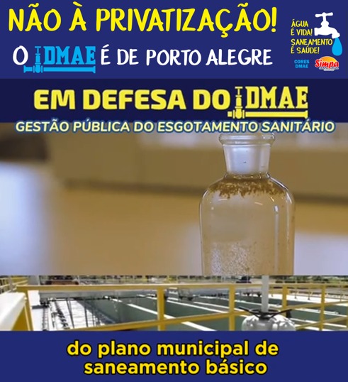 O QUINTO, de uma série de 6 vídeos em defesa do DMAE público, foi lançado hoje e faz parte da campanha de mídia contra a privatização/concessão/parceirização do Departamento. O vídeo evidencia a GESTÃO PÚBLICA DO ESGOTAMENTO SANITÁRIO em contraponto a gestão privada. Enquanto o vídeo estava sendo editado, tivemos a triste notícia do falecimento do […]