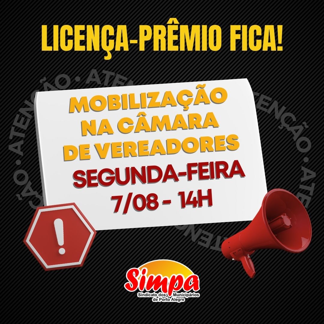 A direção do Sindicato dos Municipários de Porto Alegre – Simpa e servidores/as municipais acompanharam na tarde desta segunda-feira (07/08), a sessão da Câmara Municipal que tinha o Projeto de Emenda à Lei Orgânica – PELO nº 02/2022, que prevê o fim da licença prêmio e alterações na LAA, como prioridade de discussão. No entanto, […]