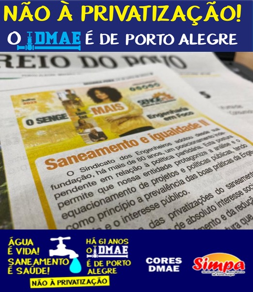 No jornal Correio do Povo da segunda-feira (24/07), o SENGE-RS, na coluna Engenharia em Foco, publicou o artigo “Saneamento e Igualdade II” reafirmando o posicionamento do sindicato a respeito das privatizações no setor de saneamento e defendendo o controle das políticas e investimentos para que permaneçam “sob a gestão do Estado, buscando eficiência, justiça e […]