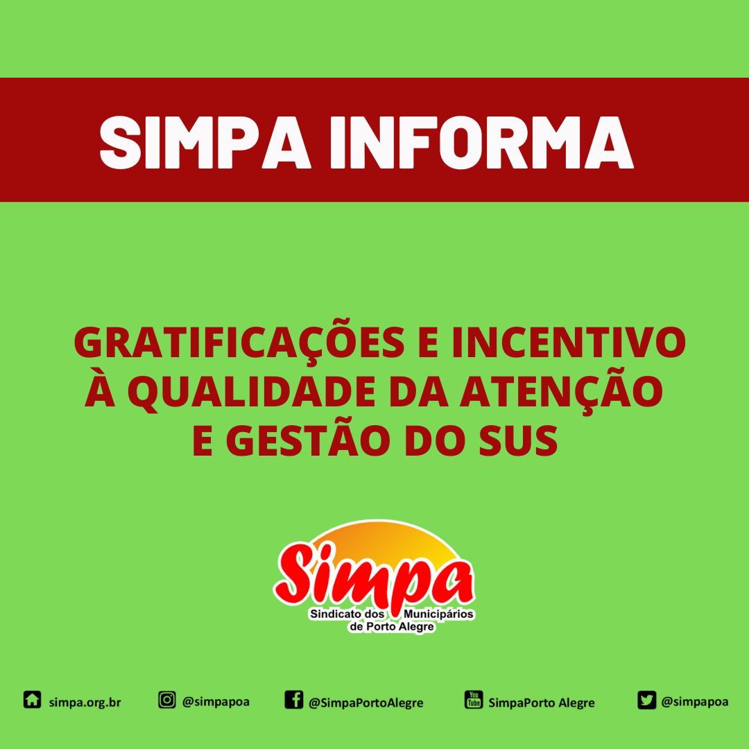 O Sindicato dos Municipários de Porto Alegre (Simpa) solicitou informações à Secretaria Municipal de Saúde (SMS), no início da manhã desta quarta-feira (28/6), sobre as Gratificações de Incentivo à Qualidade da Atenção e Gestão do SUS. O questionamento do Simpa foi motivado em função dos valores pagos no contracheque dos colegas, no mês de maio, […]
