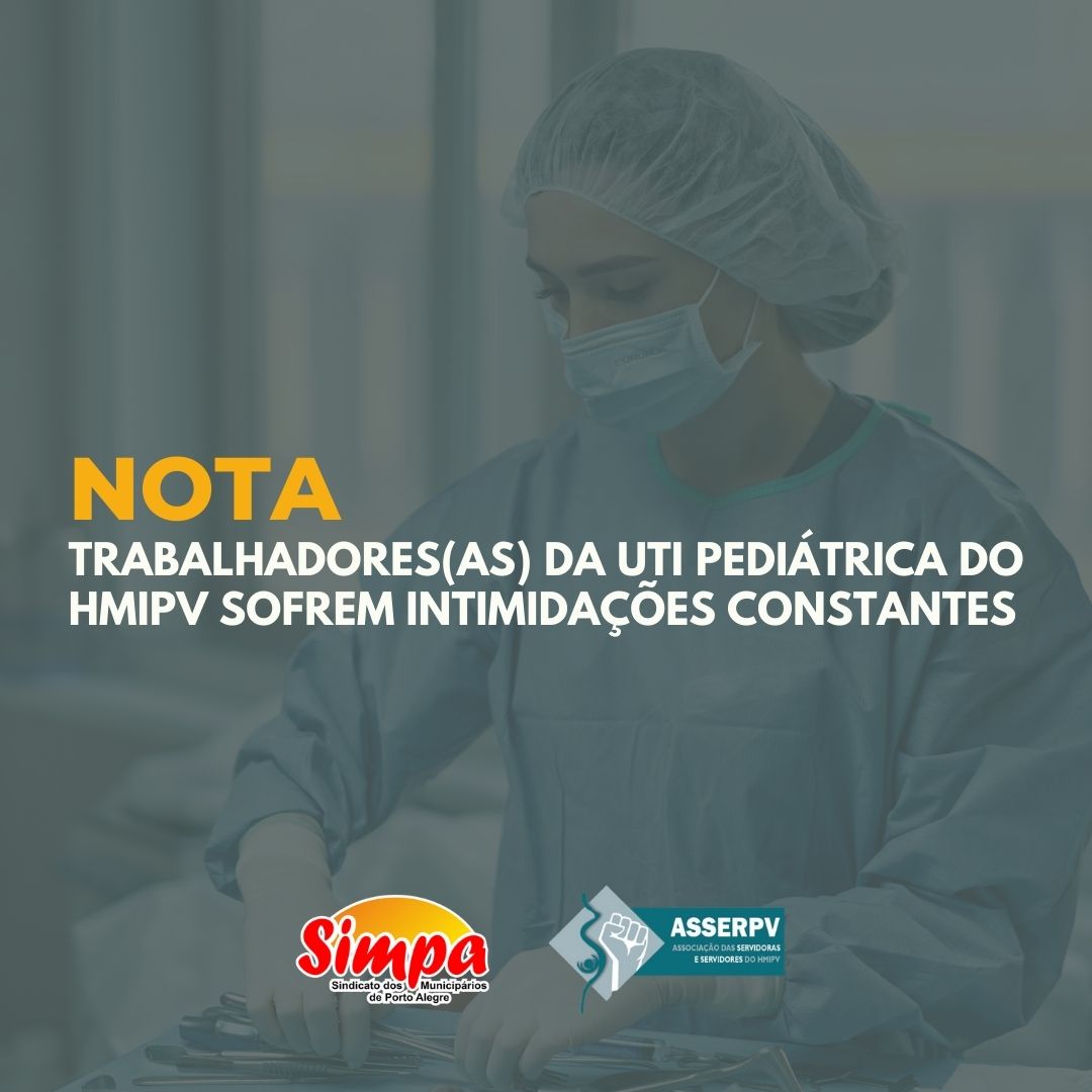 Considerando as diversas denúncias de ameaças e pressão psicológica direcionadas a trabalhadores(as) da UTI pediátrica do Hospital Materno-infantil Presidente Vargas, por parte de familiares de pacientes, ocasionando grave risco à saúde física e mental desses profissionais, a Asserpv e o Simpa vêm prestar total apoio aos colegas e explicar à população usuária do hospital de quem […]