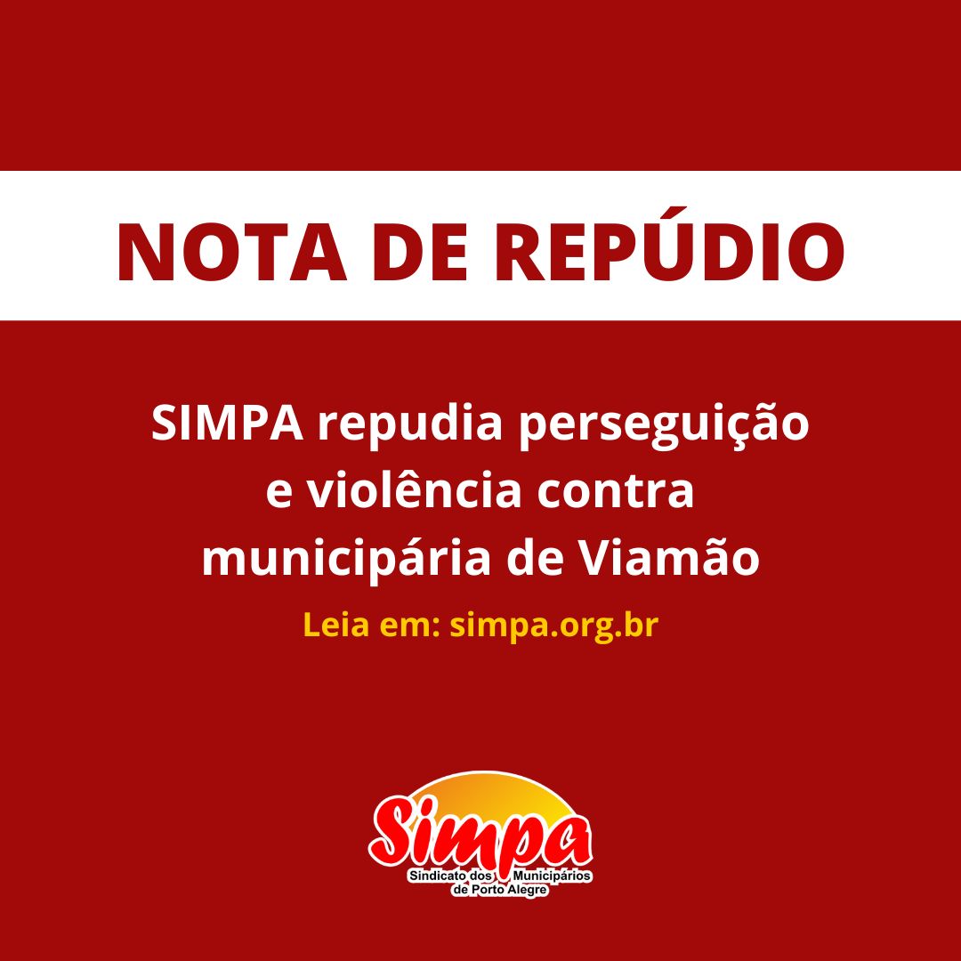 O Sindicato dos Municipários de Porto Alegre – SIMPA enviou moção de repúdio à Administração Municipal de Viamão por perseguição sindical, assédio moral e violência de gênero cometida contra a professora Aline Beatriz Rodrigues, da Escola Municipal Luciana de Abreu. A moção foi proposta e aprovada em Assembleia da categoria. Nosso repúdio, sempre, à toda […]