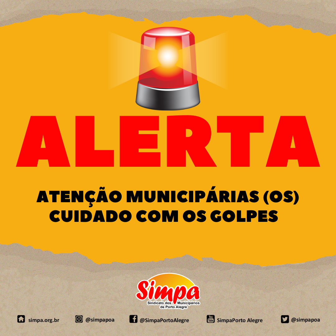 Estelionatários continuam se passando por advogados do Sindicato dos Municipários de Porto Alegre (Simpa) para aplicar golpes em processos de servidores públicos municipais. Utilizam o nome das advogadas por meio de mensagens e ligações e pedindo dados pessoais. Fiquem atentos e atentas, pois os golpistas utilizam nome, CPF e número dos processos e OAB existentes […]