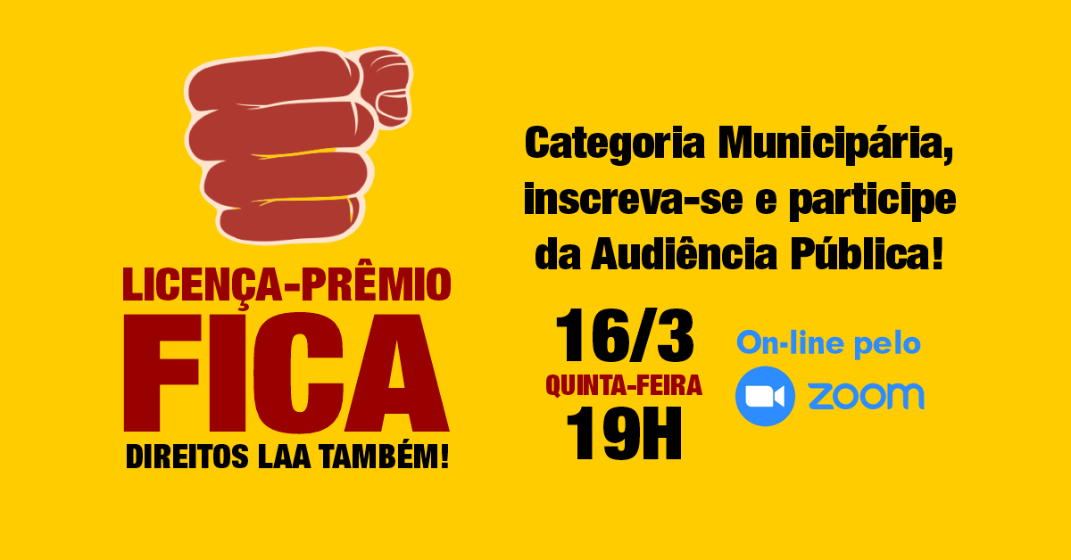 Categoria municipária, o fim da licença-prêmio é mais um ataque no processo de retirada de direitos das servidoras e servidores de Porto Alegre. Pressione os vereadores e vereadoras para que rejeitem o Projeto de Emenda à Lei Orgânica (PELO) nº 02/2022, que extingue a licença-prêmio das trabalhadoras e trabalhadores municipários. Vamos agir na defesa dos […]