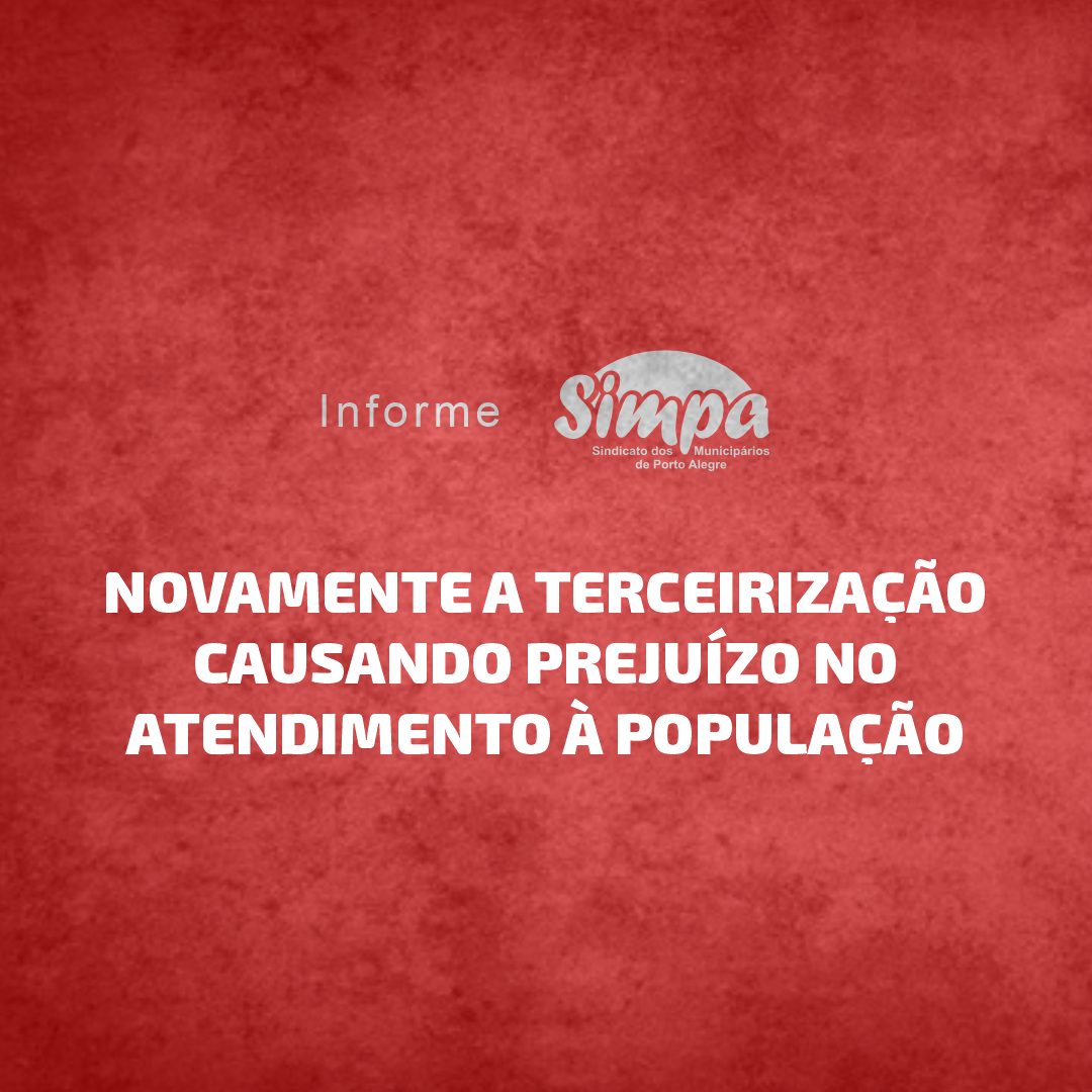 NOVAMENTE A TERCEIRIZAÇÃO! A terceirização faz mal aos trabalhadores e ao serviço público. A crítica é recorrente em diversos setores da Prefeitura (Saúde, Fasc, Educação, …) e sempre denunciada pelo Simpa. Esta semana, o modelo de terceirização do prefeito Melo deixou sem segurança o Pronto Atendimento Cruzeiro do Sul (PACS), um importante equipamento de […]