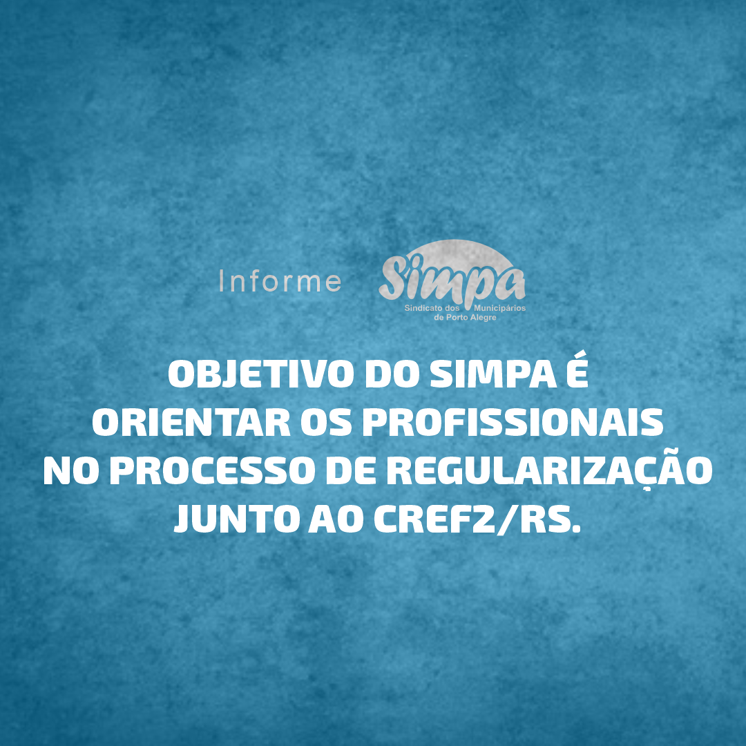 O Sindicato dos Municipários de Porto Alegre (Simpa) informa que disponibilizará o atendimento jurídico aos professores de Educação Física do município que não regularizaram sua situação do registro junto ao Conselho Regional de Educação Física da Região da 2ª Região (CREF2/RS). O objetivo é oferecer orientação aos profissionais que estão em processo de regularização junto […]