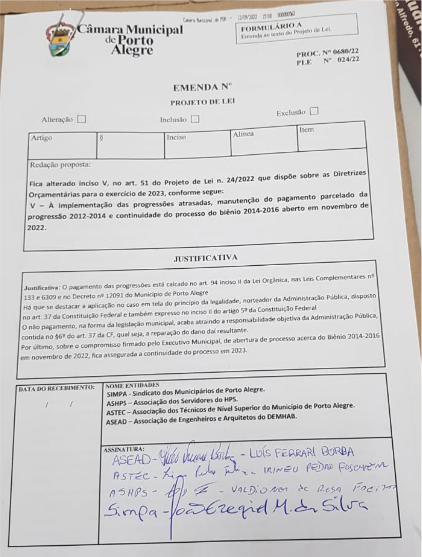 O Sindicato dos Municipários de Porto Alegre (Simpa) protocolou na Câmara de Vereadores, na tarde dessa segunda-feira (12/9), emendas ao Projeto de Lei do Executivo (PLE) nº 24/2022, que dispõe sobre as Diretrizes Orçamentárias para o exercício de 2023. As emendas, assinadas conjuntamente com as associações dos Servidores do Hospital de Pronto-Socorro (ASHPS), dos Técnicos […]