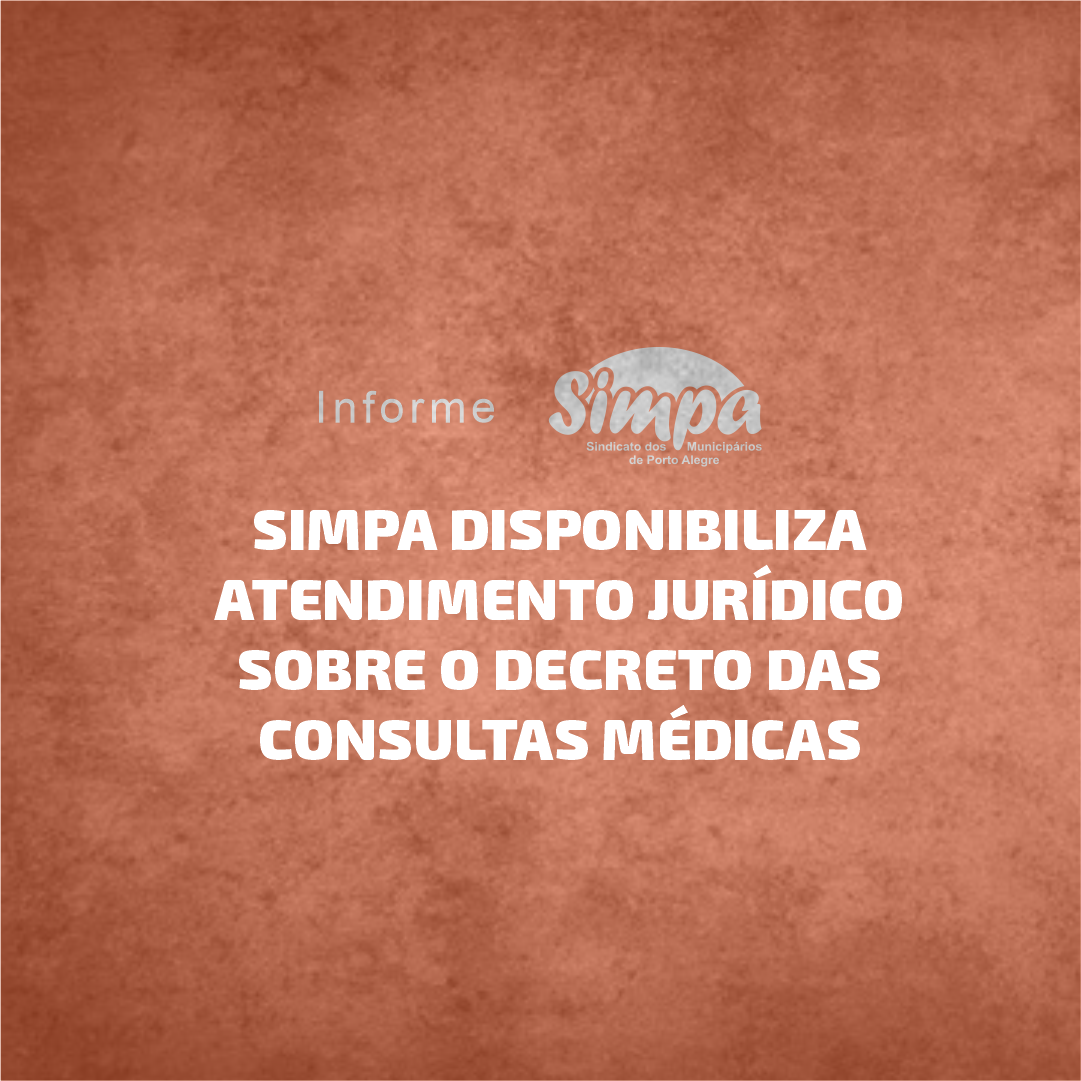 Está em vigor, desde o dia 15 de junho, o Decreto n° 21.523 sobre procedimentos de controle de efetividade nos afastamentos por motivo de saúde e para comparecer a consultas médicas no âmbito do Município de Porto Alegre. A direção do Simpa tomou conhecimento do mesmo, fez a análise jurídica e está solicitando ao governo […]