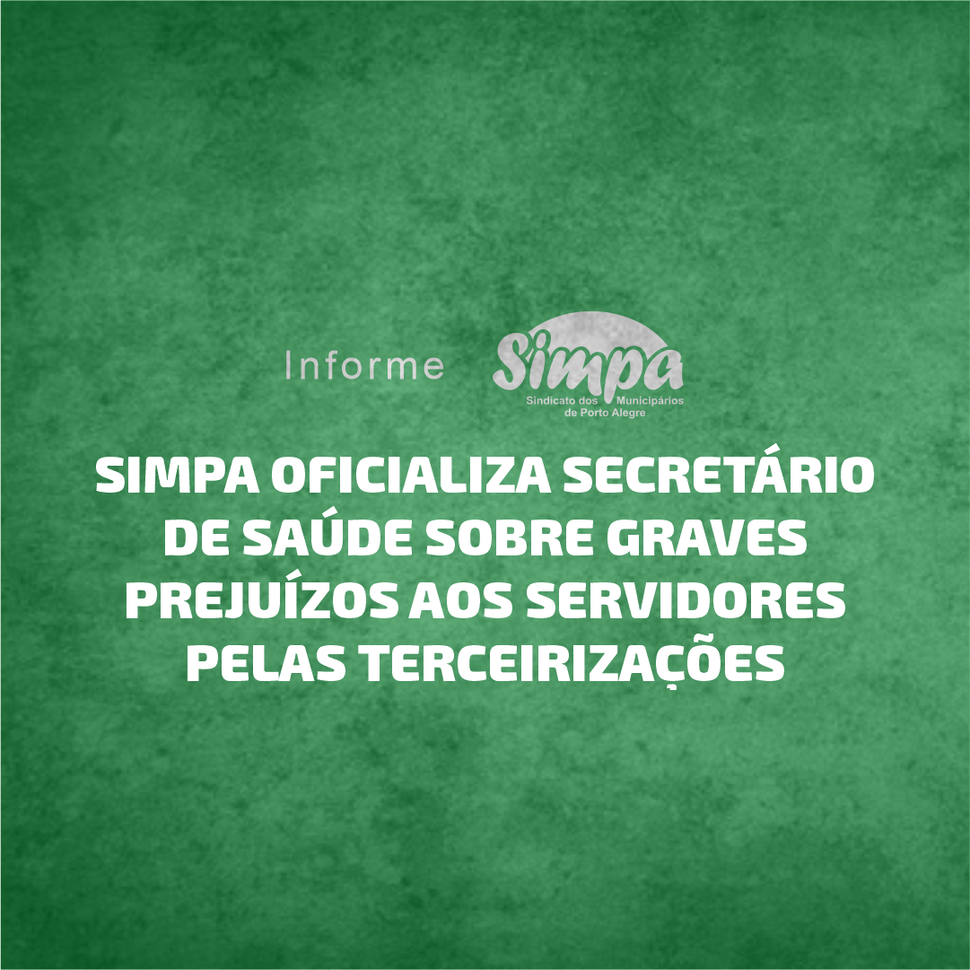 O avanço significativo do ingresso das entidades privadas na rede de saúde municipal de Porto Alegre desencadeou um movimento do Conselho Municipal de Saúde (CMS), do Simpa, do Cores Saúde, parlamentares e toda a comunidade em defesa do serviço público e contra as terceirizações. Nesta segunda-feira (27), a direção do Simpa encaminhou um ofício […]