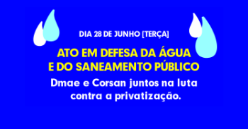 DMAE E CORSAN SÃO BENS COMUNS DA POPULAÇÃO E NÃO DEVEM SER PRIVATIZADOS! PARTICIPE DO ATO EM DEFESA DA ÁGUA E DO SANEAMENTO PÚBLICO, NO DIA 28/6, E DIGA NÃO À PRIVATIZAÇÃO E CONCESSÃO DA ÁGUA E DO SANEAMENTO PÚBLICOS! A concentração para a mobilização chamada pelo Simpa, pelo Sindiágua-RS e movimentos populares […]