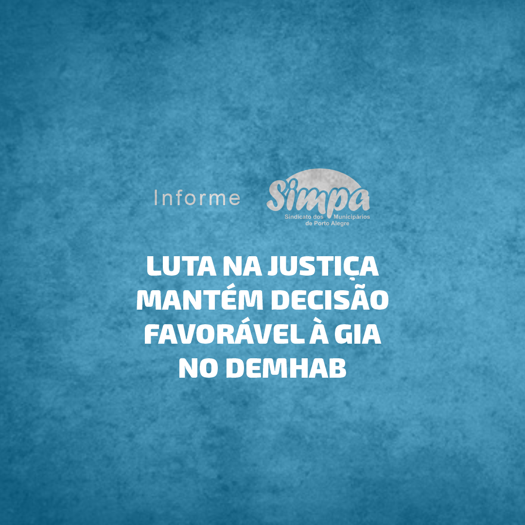 O Simpa propôs ação judicial, visando restabelecer a concessão da Gratificação de Incentivo à Arrecadação (GIA) às servidoras e servidores lotados no Departamento Municipal de Habitação (Demhab), conforme a legislação estabelecida. A concessão e pagamento da GIA foi suspensa na gestão do ex-prefeito Marchezan, de forma genérica e irrestrita, por meio de ato normativo precário […]