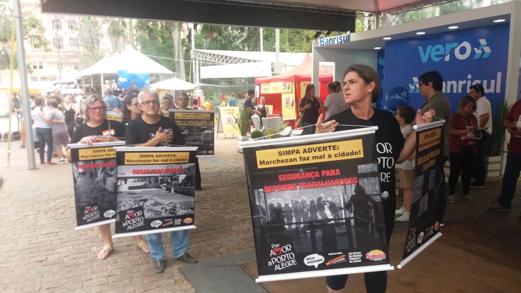 Nesta terça-feira, 13 de novembro, o Núcleo de Aposentados do Simpa realizou nova intervenção na cidade, desta vez na 64ª Feira do Livro, para denunciar as péssimas condições de trabalho da categoria municipária e o sucateamento dos serviços promovidos pela gestão Marchezan. Munidos de banners que mostram o descaso da atual gestão com Porto Alegre […]