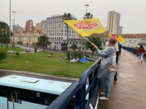 O ato foi uma iniciativa do Fórum de Servidores Públicos do RS, do qual o Simpa faz parte. Durante o protesto, carros que passavam sob a passarela buzinaram, manifestando apoio.